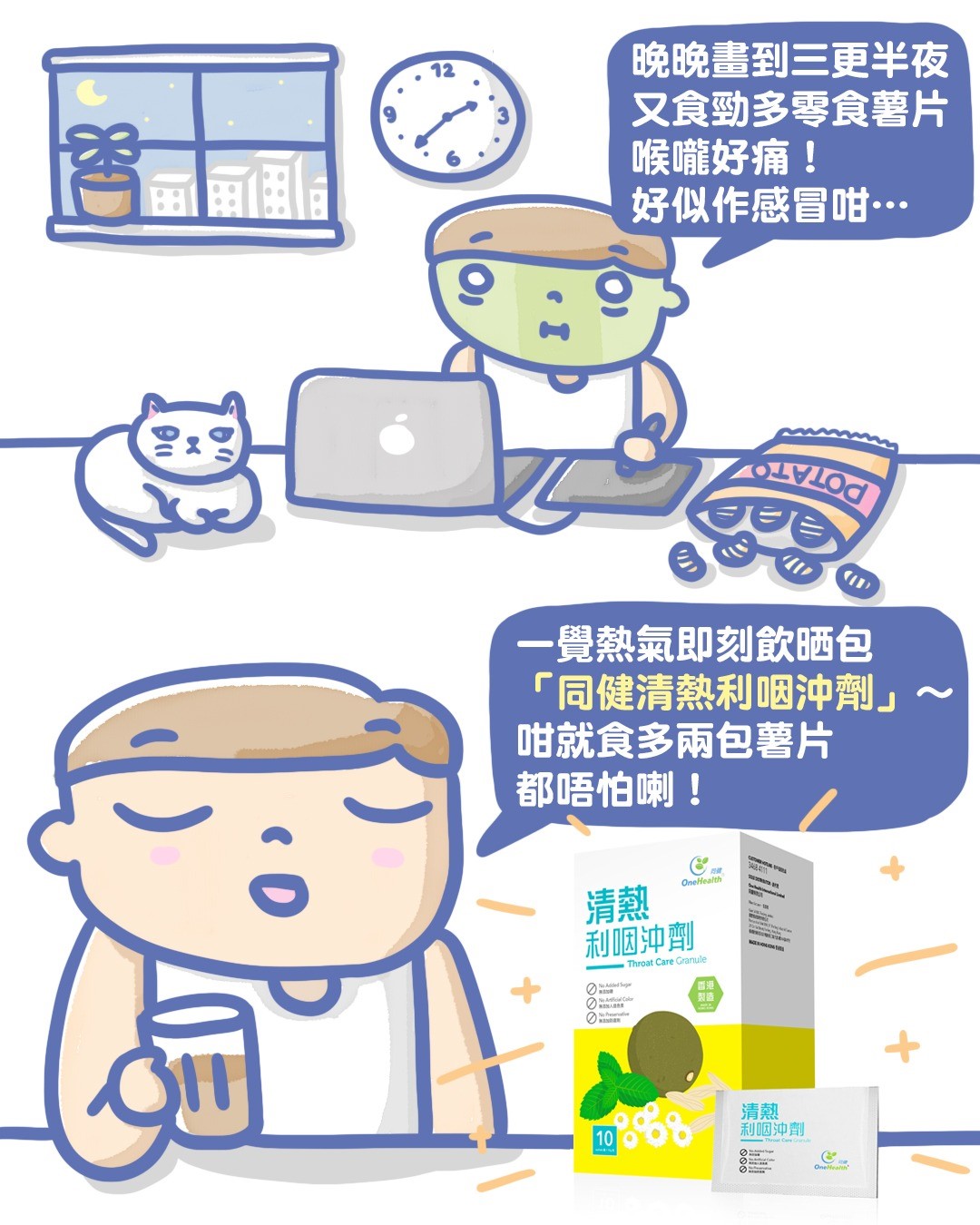 自從做咗全職網絡創作人之後,平時生活雖然都叫自律,但多起嘢做上嚟都會捱下夜,加上平時食埋好多零食薯片,又約朋友打邊爐/BBQ,難免有時會喉嚨唔舒服!