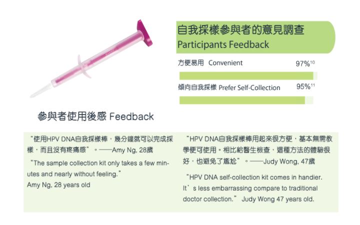 於獨立的空間內,自行採集子宮頸細胞樣本,大大減低傳統檢測方法的心理壓力及尷尬感。
